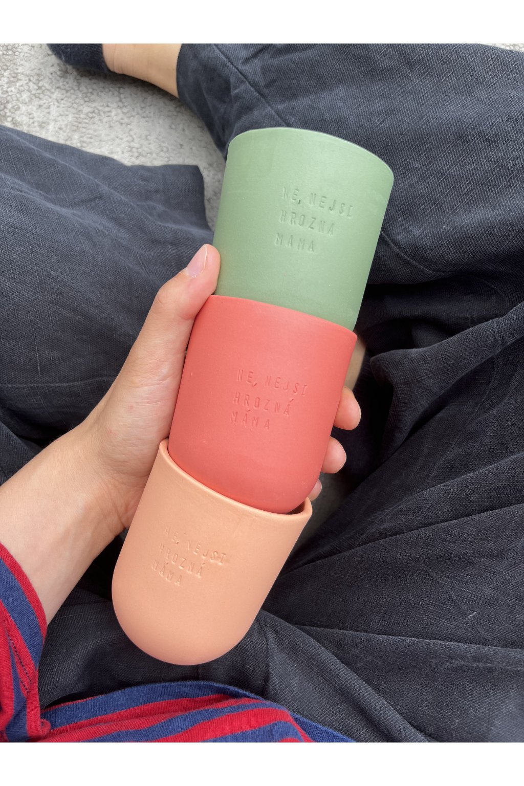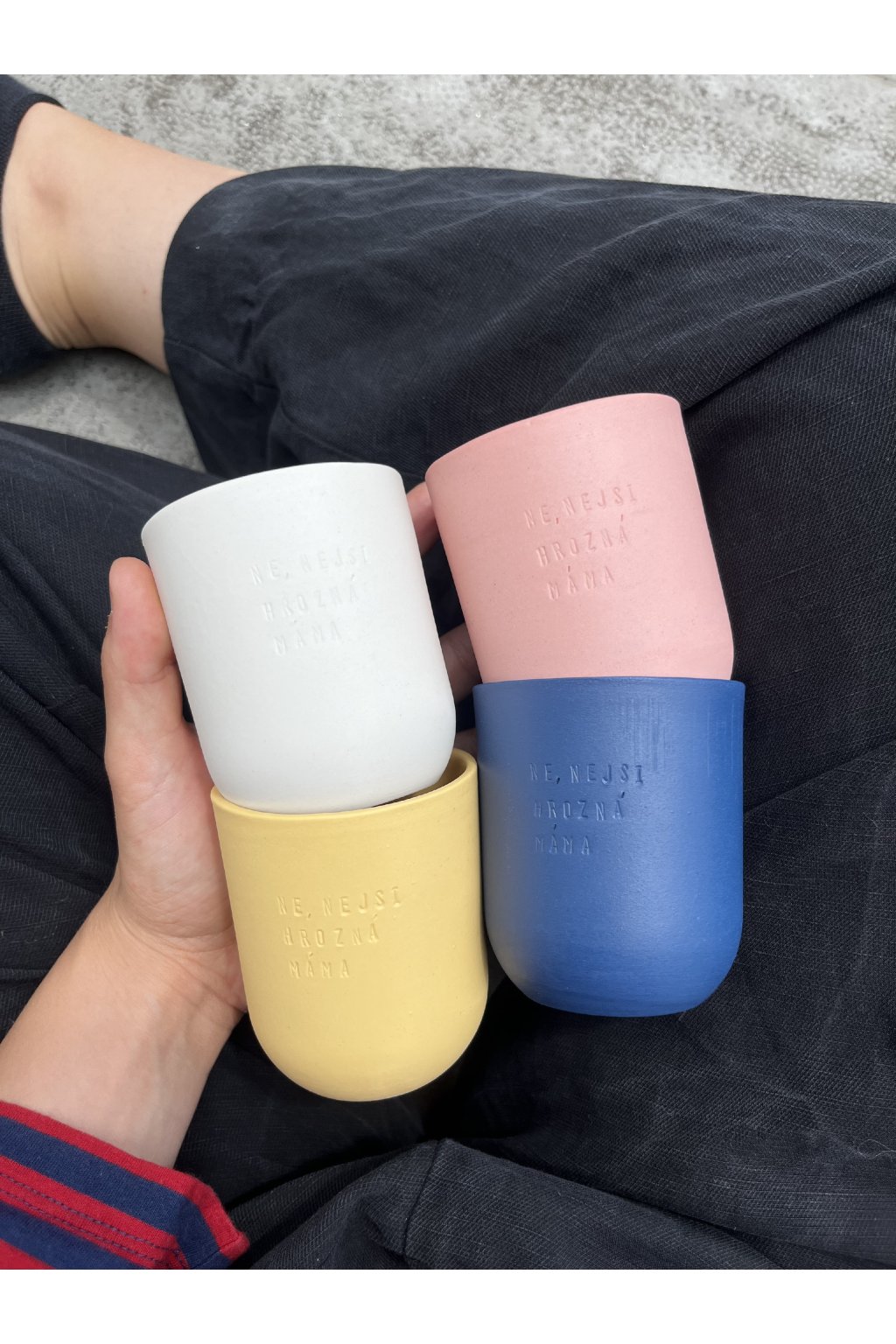 RŮŽOVÝ KALÍŠEK MÁ DROBNÉ TMAVĚMODRÉ TEČKY.